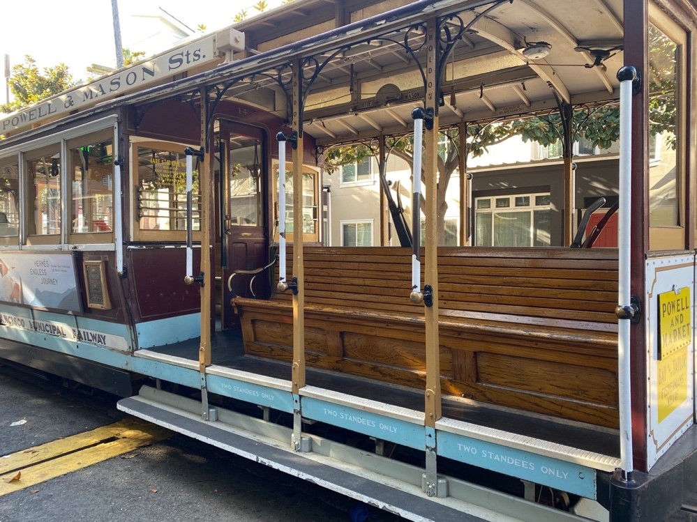 旅行者の多いシーズンでは2〜3時間並ぶこともありますが、ケーブルカーに乗って感じられる風やサンフランシスコの景色はとても美しいので、一度は乗ってみる価値ありです。