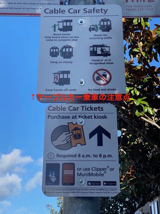 ケーブルカーは片道7ドル(2020年1月から8ドルに値上がり)でこちらもクリッパーカードを使って乗車することもでき、クリッパーカードを使う場合には車掌さんがきたらカードを渡す形になります。