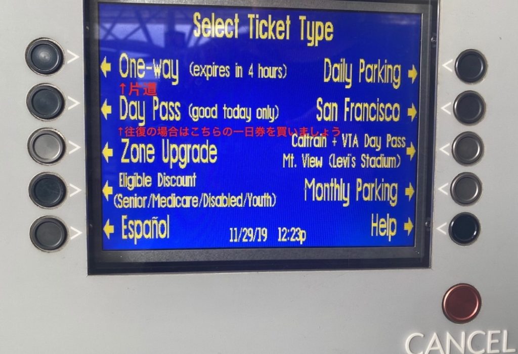 ちなみに、Cal Trainは本数が少なく休日などは1時間に1本しかこない時もあります。往復(Day Pass)券を買えば一日中使えますが、片道券を買った場合にはチケットの有効期限は4時間なので注意しましょう。