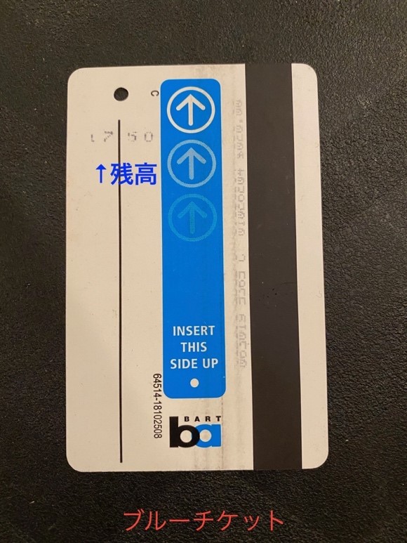 クリッパーカードではないBARTのチケットBART Blue Ticket(ブルーチケット)と言います。
