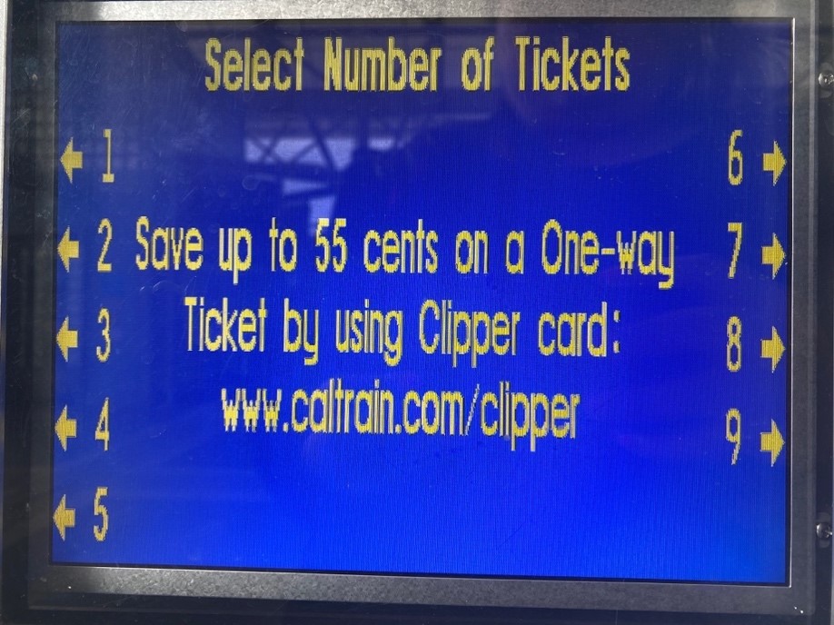 BARTやMUNI同様Cal Trainもクリッパーカードを使う事によって55セントの割引き乗車が可能です。