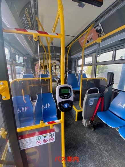 バスは基本的に前から乗って後ろから降りる形で、降りるときはストップボタンを押すか窓にかかっている紐を引っ張ればそれがストップサインになります。
