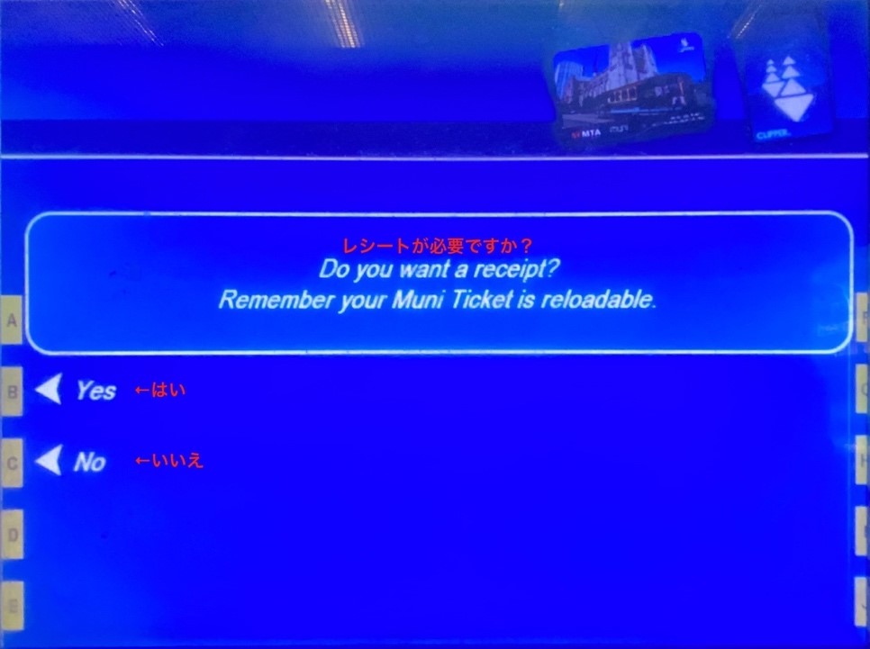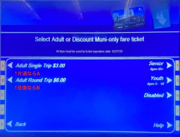 チケットを購入する場合にはまずAの”Buy Muni Tickets”を押します