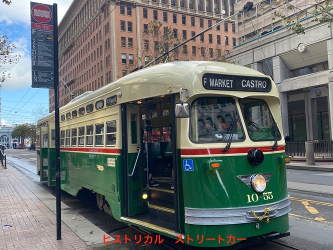 続いてはサンフランシスコ名物のケーブルカーです。ケーブルカーはサンフランシスコのダウンタウンからピア周辺の急激な坂の多いエリアを走っている観光名物の一つです。
