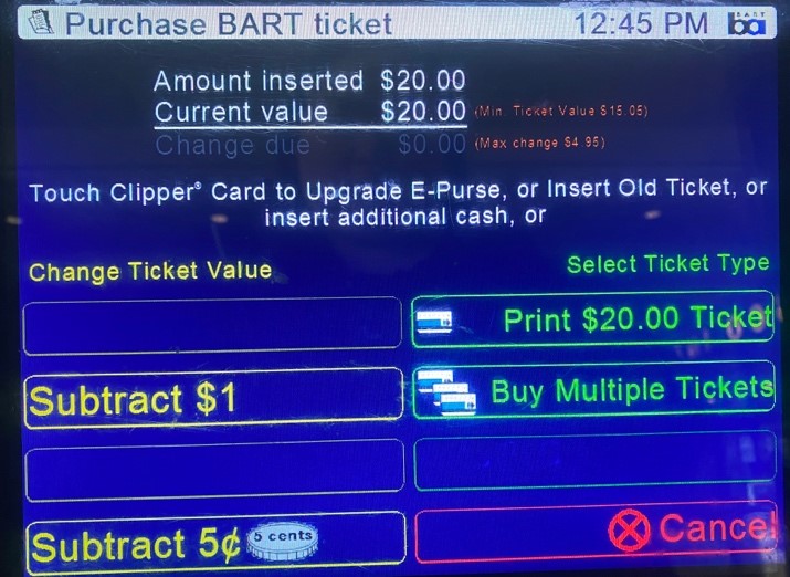 2019年の夏から環境保護の観点やベイエリアでの交通機関クリッパーカード一体化の活動が始まり、駅によってはクリッパーカードしか発売していない場合もあります。