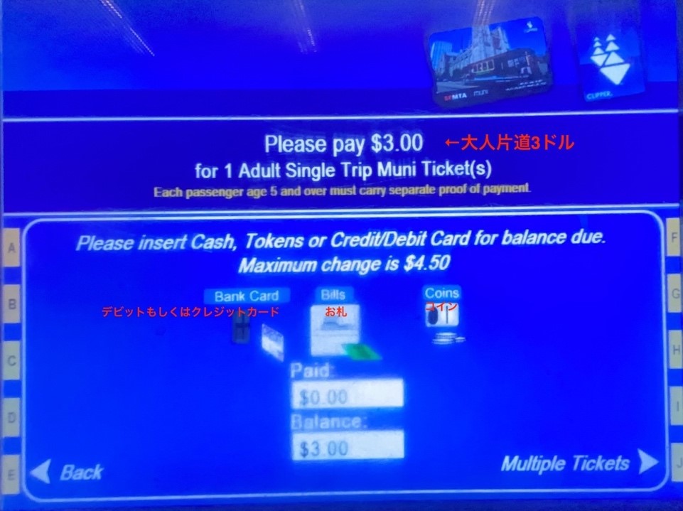 MUNIの料金は電車もバスも一律で3ドルですが、クリッパーカードを使うと一律2.50ドルになります。