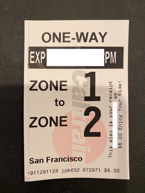 例えば、市内にあるカルトレインの始発や終着にも使われているサンフランシスコ駅は「Zone1」になります。