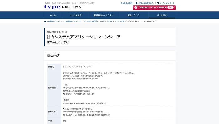 もうひとつtype転職エージェントの求人票を見てみましょう。