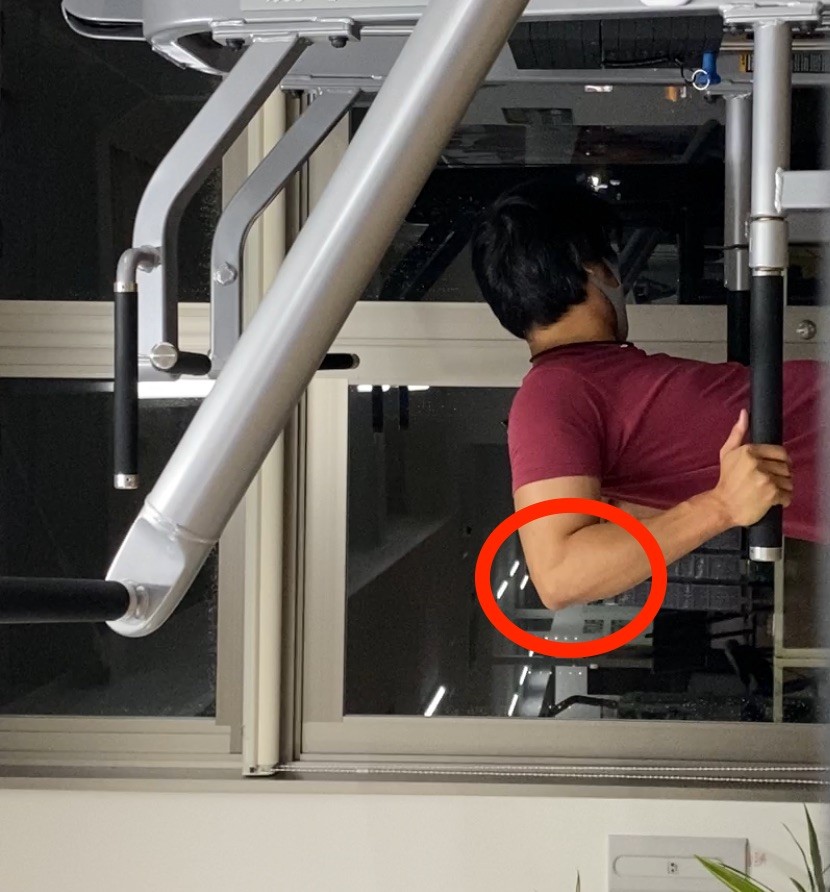ディップスが大胸筋にうまく効かない、という方は自分のディップスを横から撮影し、チェックしてみてくださいね。