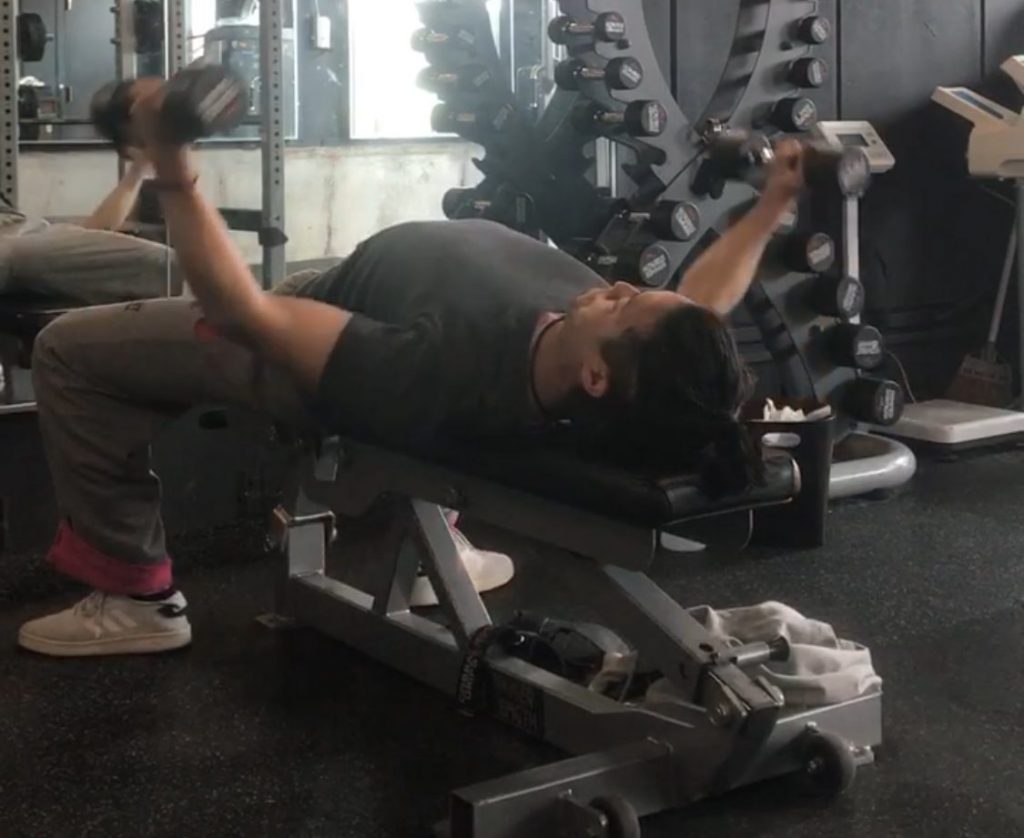 少しダンベルを揺らしてみた際に刺激を真っ先に大胸筋に感じられるようなら、スタートポジションは整っていると言えるでしょう。