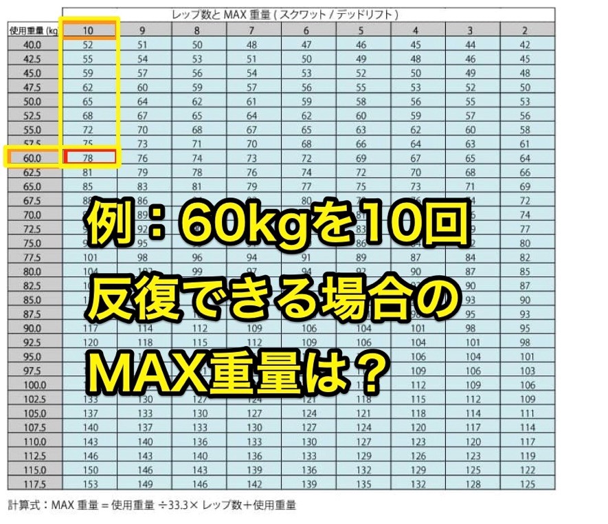 | 強度(最大筋力に対する割合のパーセンテージ) | RM(最大反復可能回数) | 主な効果 |