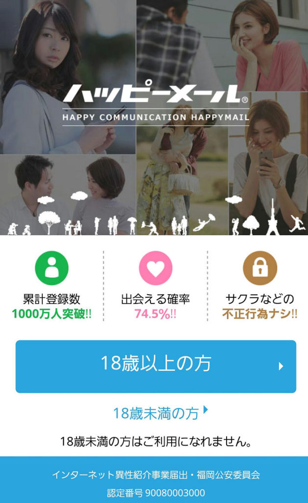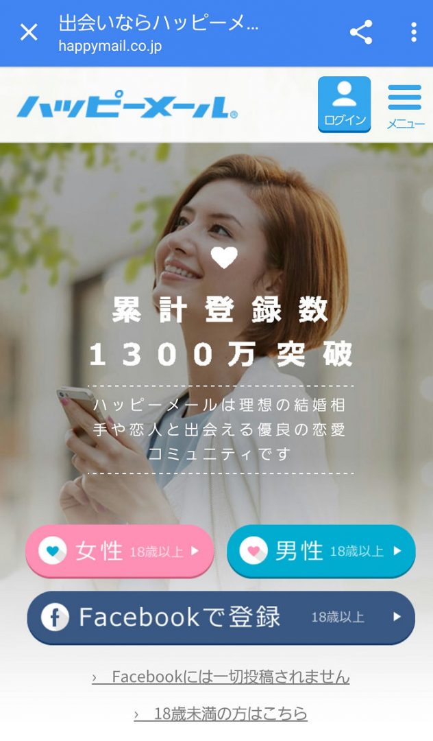 ハッピーメールは2000万人の累計登録者を誇るサイトで、幅広い年齢層に人気があります。