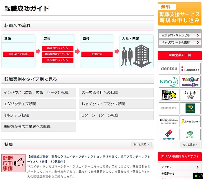 今回ご紹介するマスメディアンは、広告・Web・マスコミに専門特化した転職エージェントです。