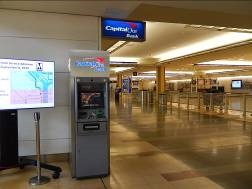 このATMは、到着ロビー、バゲージクレームの4と5の間です。CapitalOne bankのATMです。
